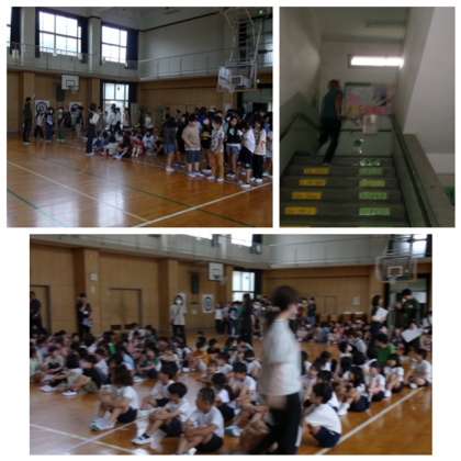 不審者を確保し安全確認できた後、講堂に集まり校長先生や生活指導部の先生から話を聞きました。23年前の附属池田小学校での事件から、訓練や自分の身を守ることの大切さを考える機会となりました。