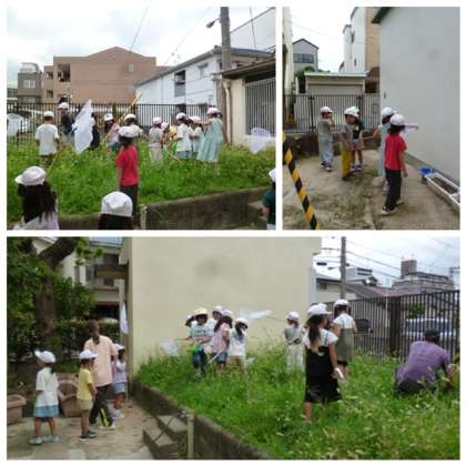 ショウリョウバッタや大きなカマキリがいました。あみとかごを交代してみんなで虫を見つけました。