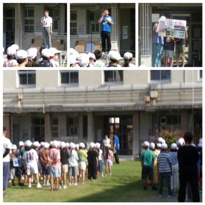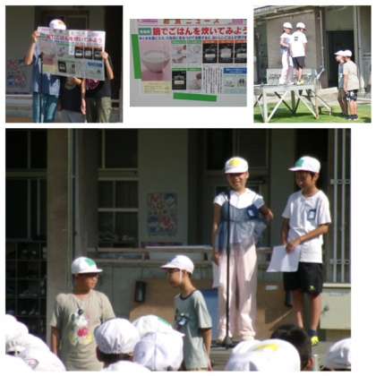 校長先生から2つの話。1つは、敬老大会に向けて、地域や身近の高齢者の方を敬い感謝の気持ちをメッセージカードに書いてください。2つ目は、「1人で出歩かない、特に人通りが少なくなる夕方など。知らない人に声をかけられたら、かかわらずその場を立ち去るかこども110番の旗のおうちに助けを求めましょう。