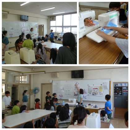 説明を聞いて、さあ、1人ずつレッツソーイング!