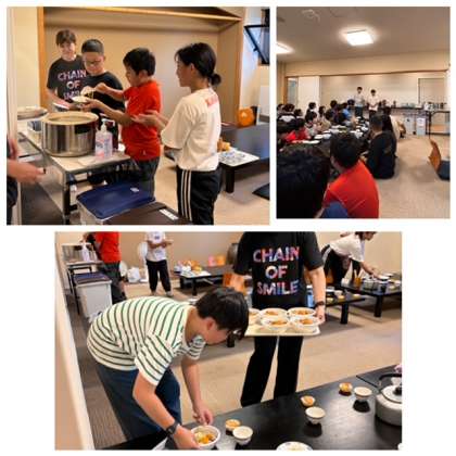 食事当番が準備を手伝って、夕食準備完了。