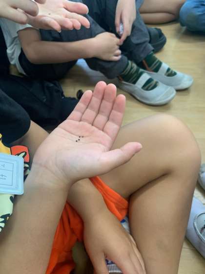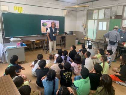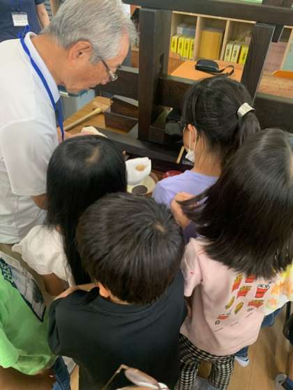 子どもたちは菜種が火で焙られたことで醸し出す香ばしい匂いに「ポップコーンみたい」「パンの焦げた匂い」など興味を示していました。油を搾りだす工程では、力いっぱいに道具を回したり、叩いたり、たくさんの量の油を作ろうと必死な様子でした。