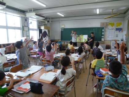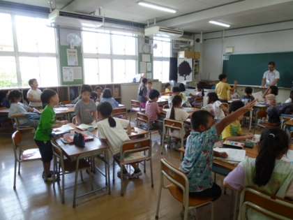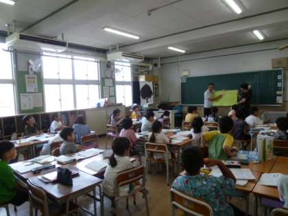 前日のつづき 図書室から借りてきた大きな絵本の挿し絵を見て、いろいろな考えが出てきました。どんどん読みが深まっていきます。