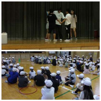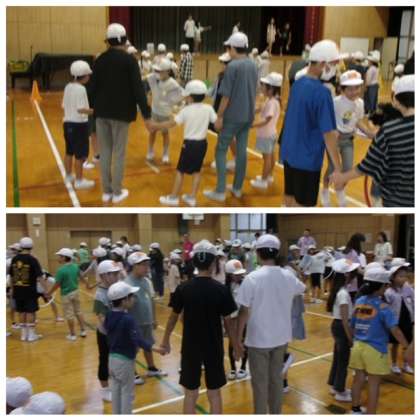 おはようあいさつゲームのあと、フラフープを使ってリレーをしました。