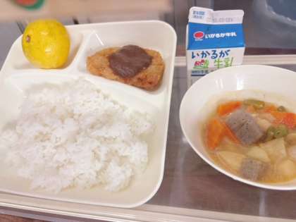 みそカツ じゃがいもと野菜の煮もの みかん ごはん、牛乳