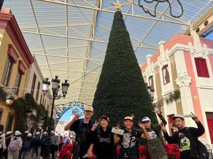 スペイン村に入りました!!スペイン村はすっかりクリスマスモード。子どもたちはテンションマックス!!これからグループに分かれて思いっきり楽しみます。