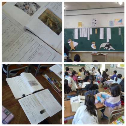 『子どもをまもるどうぶつたち』の教材で2種類の動物を比べて同じところ違うところを考えました。