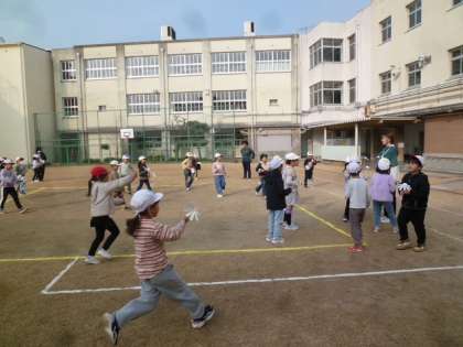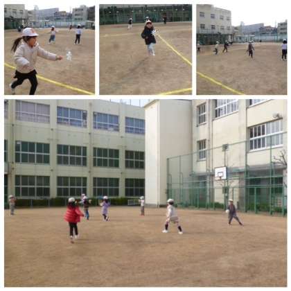 くるくるくるくる 風をうけて回る風車を持って運動場を走り回りました。