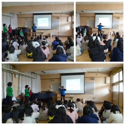 住吉区聴覚障害者協会、手話サークル杉の子のメンバーの方が来てくださり、聴覚講話を行いました。