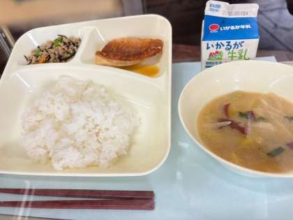 赤魚のレモンじょうゆかけ さつまいものみそ汁 高野どうふのいり煮 ごはん、牛乳
