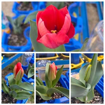 昨年度1年生が植えたチューリップも咲き始めました。
