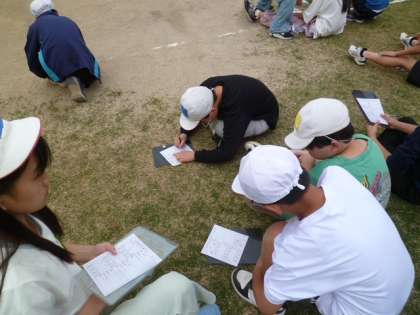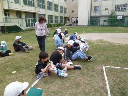 運動場では、空の雲な様子を観察していました。午前中は晴れていたのに、午後からは曇っていました。