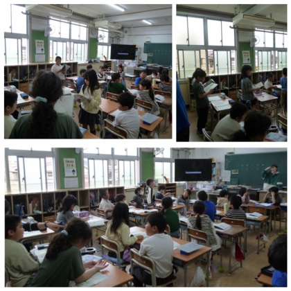 読み終わると、よかったところ、がんばっていたところを発表しあいました。