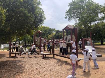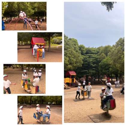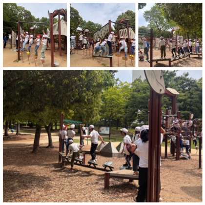 学校にはないアスレチック、初めは「こわいー」と言っていた子たちも、チャレンジ精神旺盛で、いつのまにか、クリアしていました。