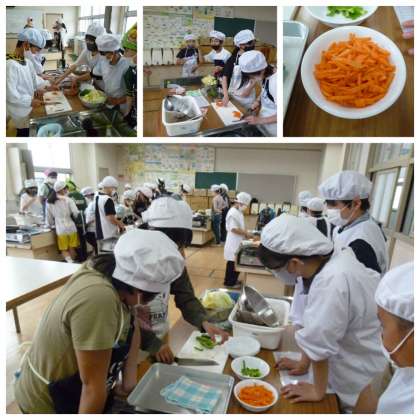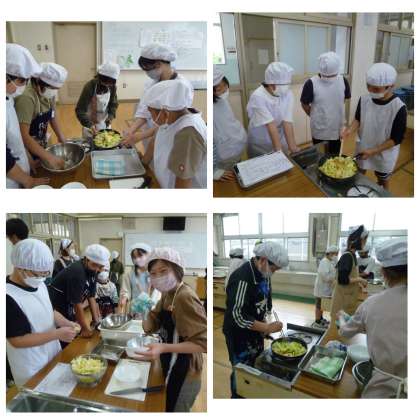 調理実習で野菜炒めを作りました。