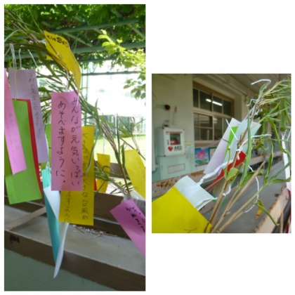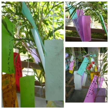 願いを書いた短冊をミニミニ笹に付けました。