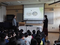 11月4日金曜日の3時間目、国際理解教育の一環として3,4年生がイギリスの文化について学びました。大阪市立大学より先生方をお迎えし、イギリスの家や庭園、鳥や花などについて英語でお話をしていただきました。また、後半には「バラ」「チューリップ」「ひまわり」を題材にした落語を英語で披露していただきました。すべての言葉がわかるわけではありませんでしたが、児童達は一生懸命理解し楽しんでいました。大阪市立大学の先生方、本当にありがとうございました。