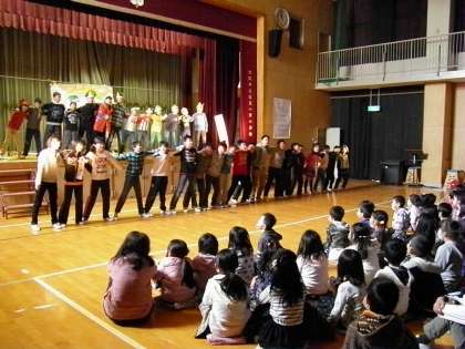 2月22日(土)土曜授業で「わくわくタイム発表会」をしました。高学年の人たちがたて割りで、自分の好きな得意なことで発表する力を伸ばす勉強です。琴やダンス、演劇や吹奏楽など舞台発表をします。多くの保護者や地域の方に見にきていただいたり、低学年の人も来年は「あんなのがしたい」と夢をふくらませたりしていました。