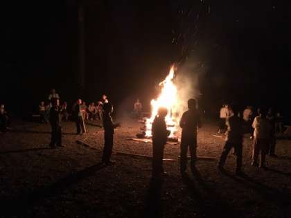 1日目の最後はキャンプファイアーです。各グループとも一所懸命に練習してきたスタンツで盛り上がりました。