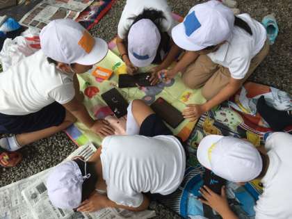 磨き上げた焼き板に絵を描いて文字を書いて乾燥させます。
