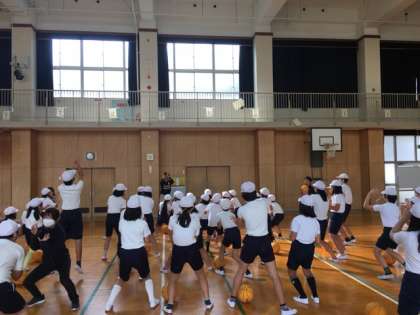 11月7日火曜日2,3時間目、5,6年生対象にトップアスリートによる「夢・授業」を実施しました。プロバスケットボールB.LEAGUの大阪エヴェッサからご指導に来ていただき、ドリブルやシュートの練習を楽しくわかりやすく教えていただきました。また子ども達はレベルの高い技術を目の当たりにして、引き付けられるように話を聞いていました。ありがとうございました。
