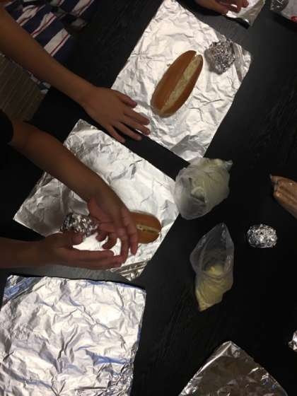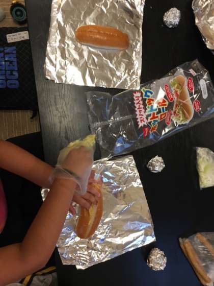 朝食のカートンドッグを作っています。お腹がすきました。