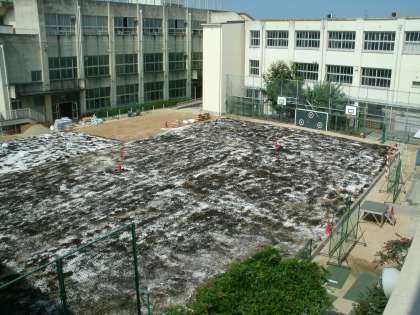 運動場芝生化工事、6日目