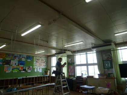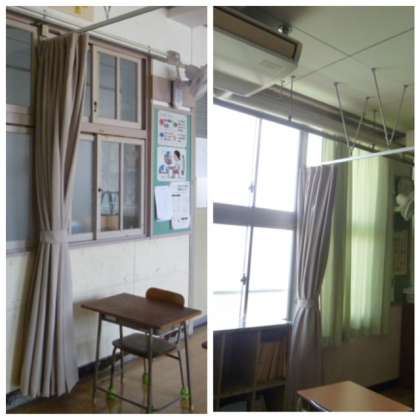 3年生以上の教室に、教室を区切るカーテンがつけられました。