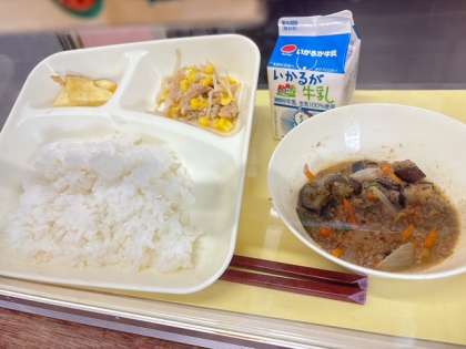 マーボーなす ツナと野菜の炒め物 焼きさつまいもの甘みつかけ ごはん、牛乳