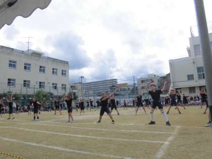 札幌市立新琴似緑小学校からオリジナルのソーラン節の協力を得て、3・4年生がソーラン節に挑戦しました。鳴子と掛け声をあわせ、力強い踊りを見せてくれました。