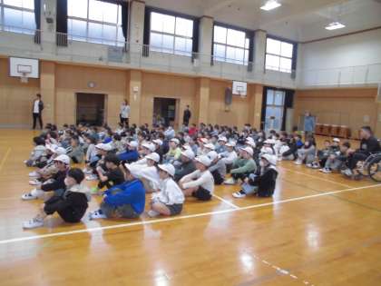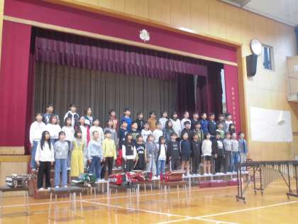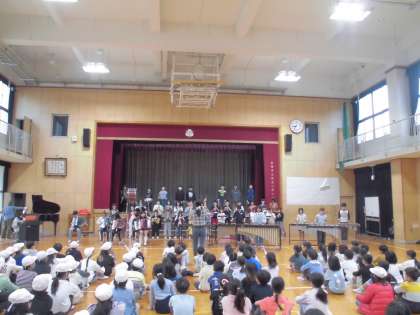 交歓音楽会で発表する歌と合奏を全員の前で披露しました。