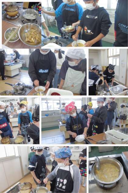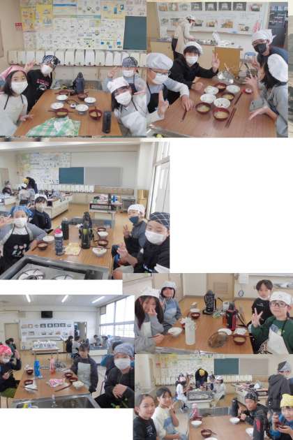 みそ汁の具材、大根、うすあげ、ねぎ、班によって、切り方がいろいろ。おいしくできたかな。
