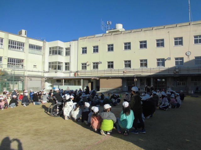 今日の児童集会で、じゃんけん列車をしました。色班ごとで1列になって、音楽が止まると先頭の人がじゃんけんをします。負けた班が勝った班の後につながっていきます。最後まで勝ち続けた班にみんなが拍手を送りました。