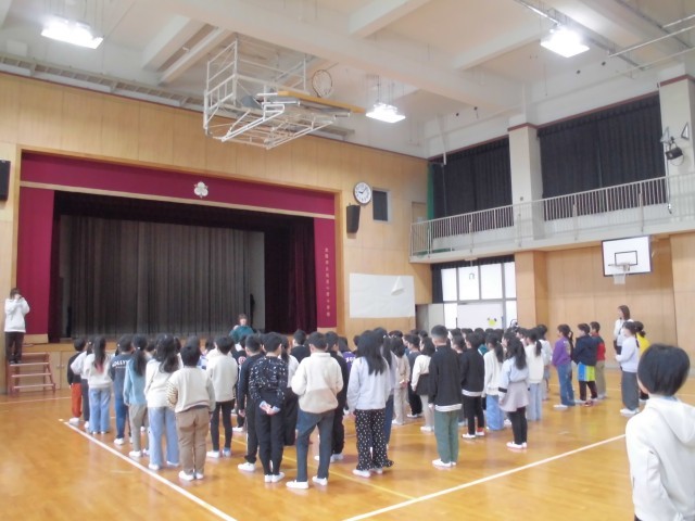 みんなで、「おりおのの子」を斉唱して、3学期がスタートしました。