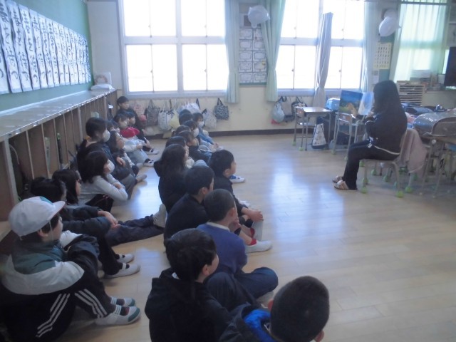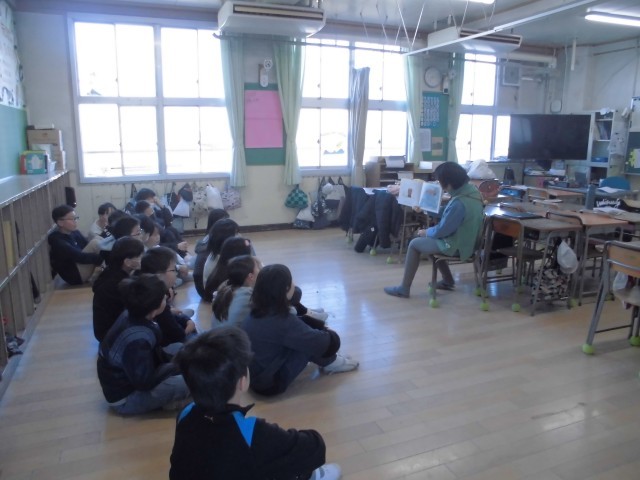 朝の時間、子どもたちは、絵本の世界に引き込まれています。