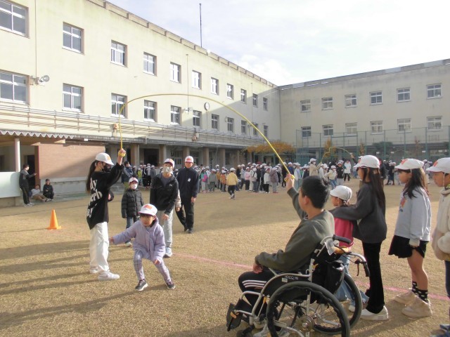 縄を回す人、跳ぶ人、みんなで声を掛け合って、何回跳べるかに挑戦しました。