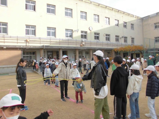 この日の児童集会で、色班別ごとに大縄跳びをしました。