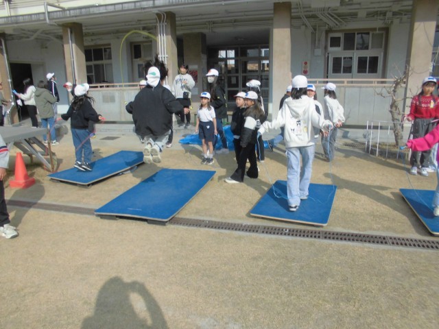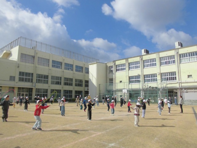 全員で準備運動をしたあと、USAの曲に合わせて縄跳びをします。