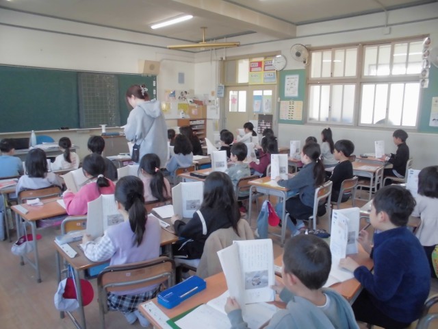 みんなで音読をしています。ゆっくりと 言葉をはっきり発して読んでいます。