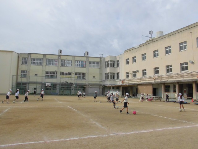 ボールを使って、ドリブルやパスの練習です。