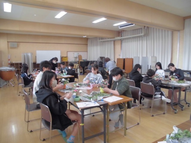 生涯学習の「花糸」の先生にフラワーアレンジメントの体験をさせてもらいました。