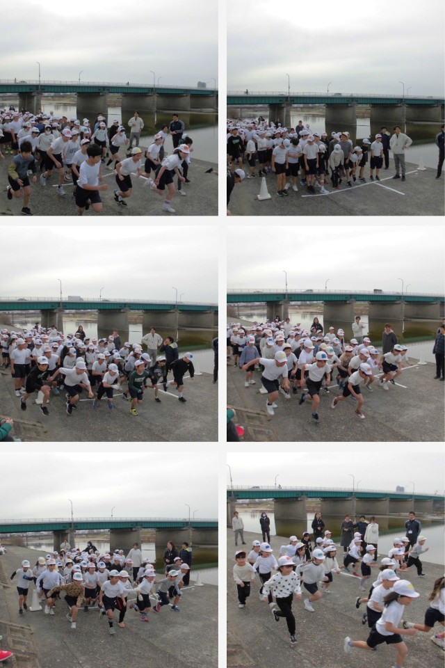 土手には応援の保護者の方の姿もあり、子どもたちは、最後まで走り切りました。