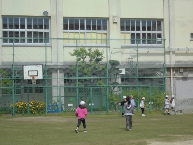 運動場に春みつけにやってきました。