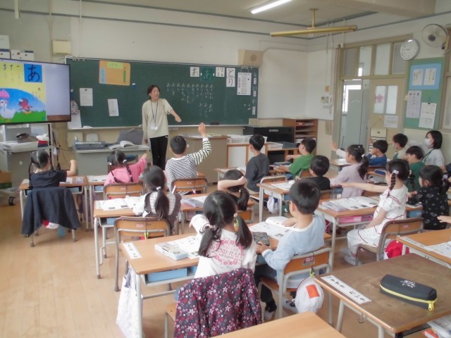 書き順、書き方を習って、空書きをしたあと、おけいこ帳に書きました。