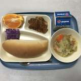 鶏肉の味噌バターソース 洋風煮 デコポン コッペパン・ブルーベリージャム 牛乳