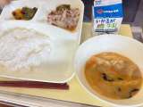 ハヤシライス グリーンアスパラガスとコーンのサラダ 洋なし(カット缶) ごはん、...