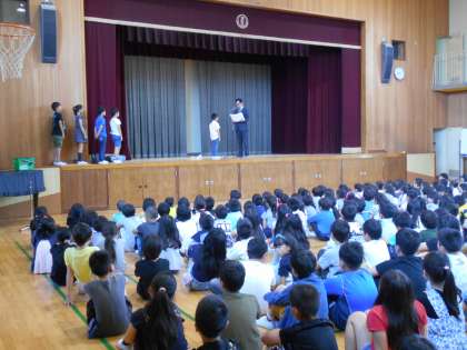 今日の児童朝会では校長先生より「いじめについて考える日」のお話がありました。「いじめについて考える日」は、いじめをなくしたいと思う小学生の強い気持ちからつくられたものです。主な内容は次のようなものです。