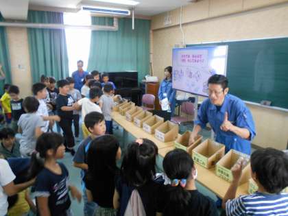 今日4年生は環境事業局による出前授業を実施しました。環境に関するDVDを見て、その後ごみの分別を体験し、環境問題に対する理解を深めました。