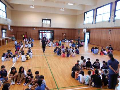 今日は1年生と6年生のきぼう交流会がありました。1年生は小学校へ入学して1か月以上が経ちましたが、他の学年とも交流を深めてお互いを理解し、校内の仲間の輪を広げていくための取り組みです。交流会ではお互いに歌を歌い合い、ゴロゴロどかんのゲームをして楽しく過ごしました。