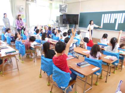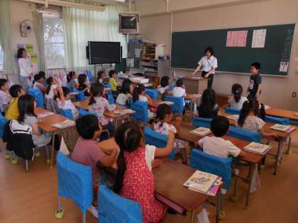 今日は今年度1回目の学習参観を行いました。1年生は国語科の「ふたとぶた」の学習を行いました。濁音と半濁音の言葉集めをしました。間違いやすいひらがなの正しい読み方や書き方を学びました。